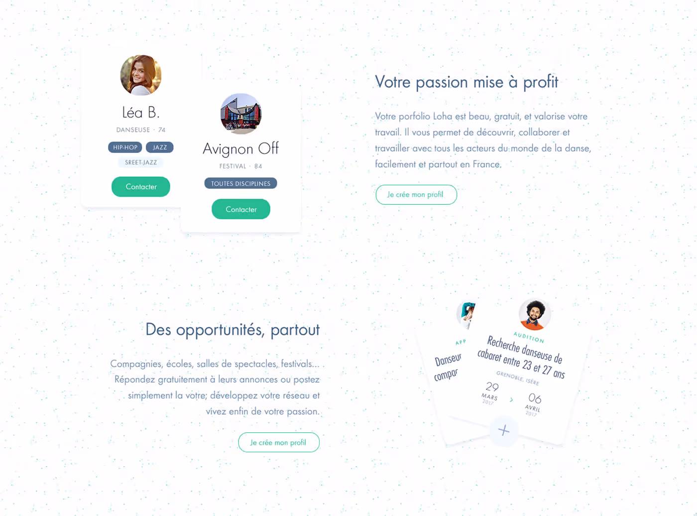 Nous lançons finalement notre web app React, construite par David en lead dev et moi en front-end. Des dizaines de danseurs, jongleurs, photographes, donnent des cours à des centaines d'enfants dans les écoles primaires via Loha. Le projet s'essouffle début 2018 et nous arrêtons. Jordan devient CMO à Germinal, David monte Apparence.io. Et… je donne des cours d'anglais autour de chez moi.