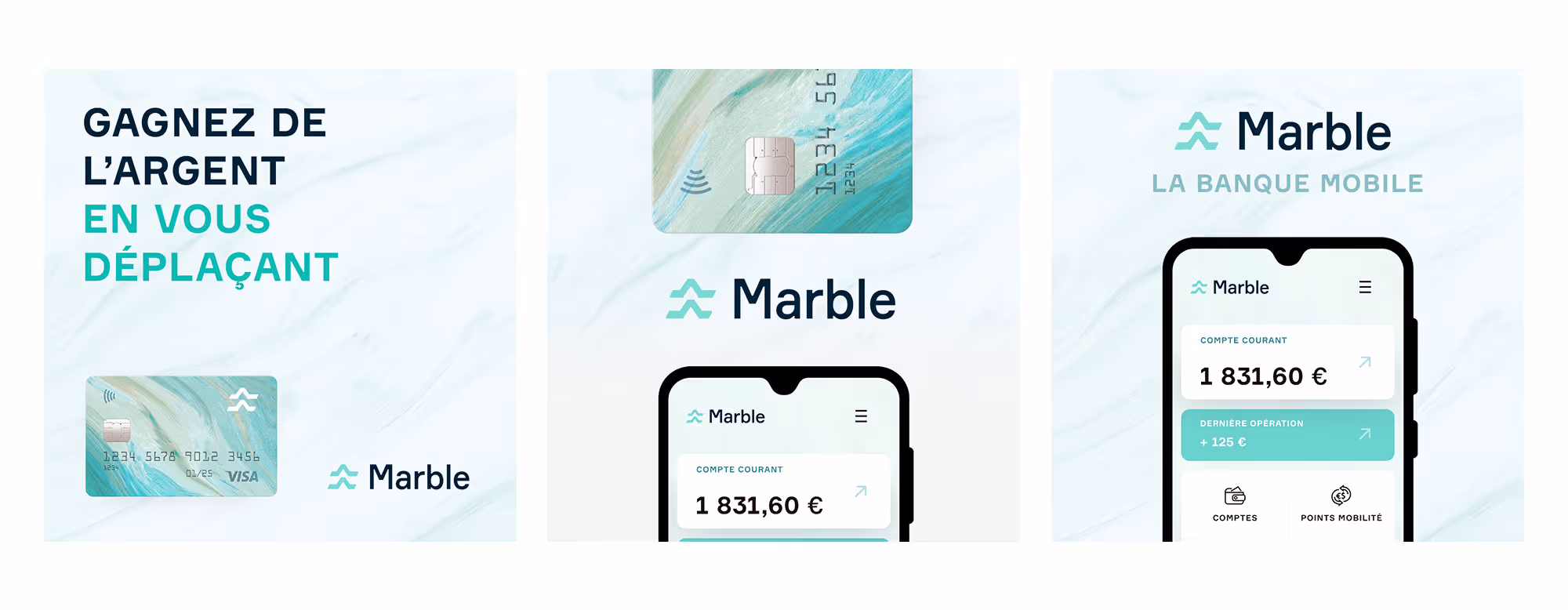 Fin 2019, Ornikar travaille avec Germinal pour tester des idées de business à lancer. L'un d'entre eux, une banque mobilité. Je monte donc une fausse marque et intègre diverses itérations de Marble, pour tester des propositions de valeur le temps d'une mission. Le tout créé en une semaine; marque, assets, landing, ads…