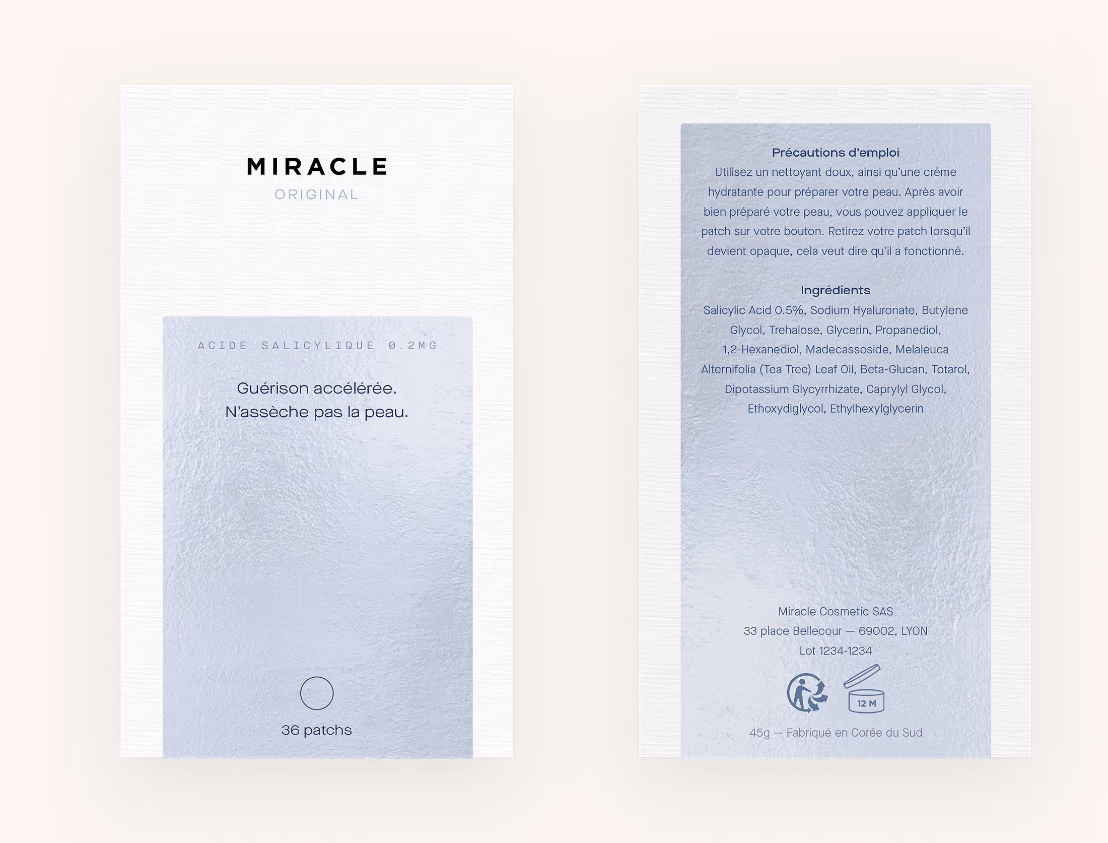 Conception du packaging en parallèle de la création du branding pour Miracle Cosmetics.