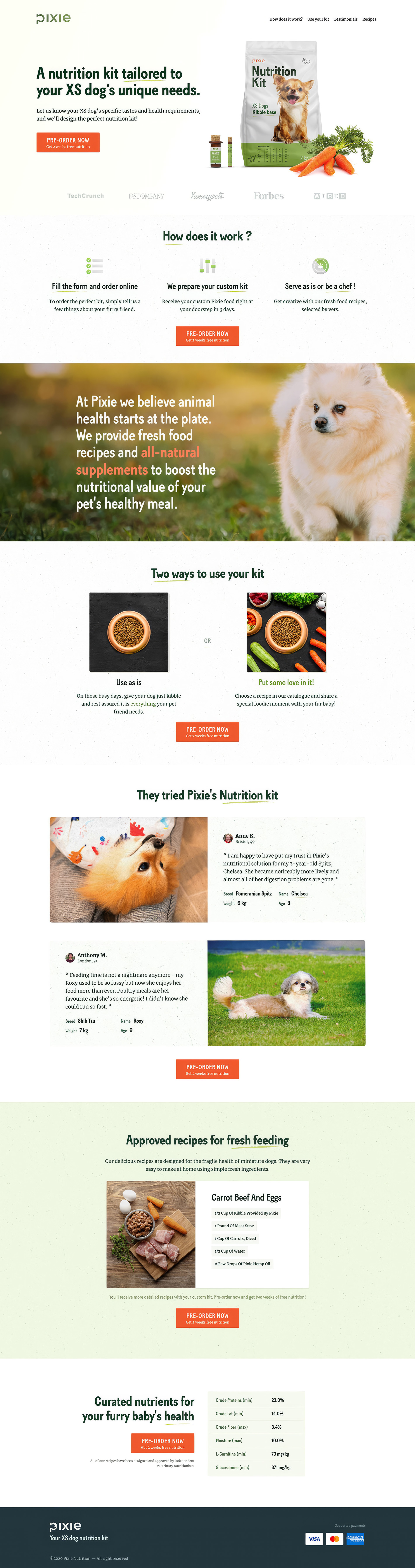 Landing page Pixie